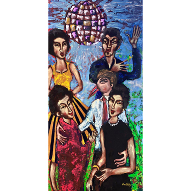 "Disco in Tokyo in the Sixties" (2023) - natural pigments & oil on canvas board (120cm x 60cm) -