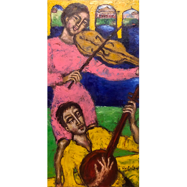 "Young Boys Still Not Looking for a Wife" (2022) - natural pigments & oil on canvas board (80cm x 40cm) -