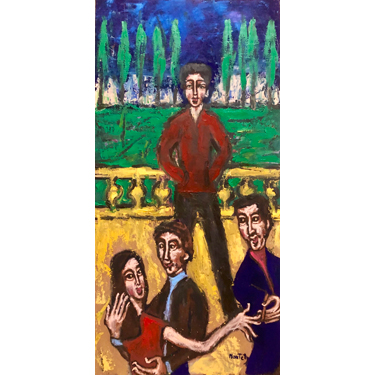 "Some Boys Won't Be Fashionable. Party in a French Manoir" (2023) - natural pigments & oil on canvas board (80cm x 40cm) -